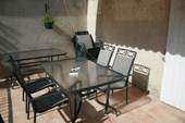 Aan het huis is een groot terras verbonden met uitzicht op de tuin. Het is voorzien van twee tafels en twaalf stoelen. Er zijn ook 2 ligstoelen aanwezig.